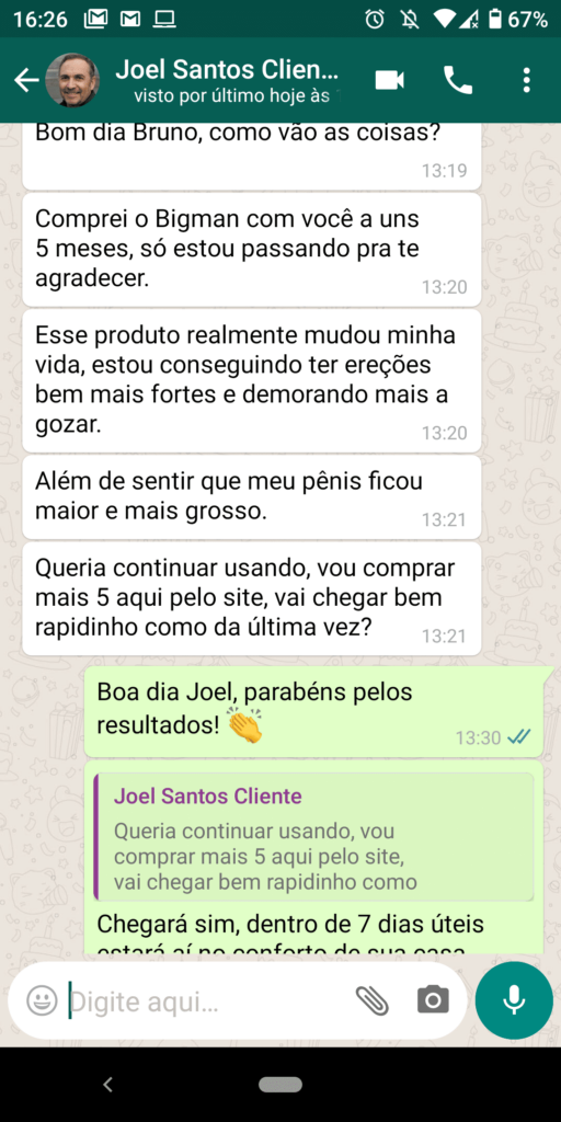 Após 14 anos meu esposo começou a ter vários problemas pra segurar a ereção e isso foi me deixando muito frustrada. O casamento já estava por um fio quando uma amiga do trabalho salvou a gente. Ela também passou por problemas parecidos com o esposo até que ele encontrou o BIG MAN CAPS e resolveu arriscar e usar. Ela começou a aparecer toda feliz lá no trabalho e quando perguntei a ela o motivo de tanta felicidade ela me contou que estava fazendo sexo praticamente todos os dias. Não pensei duas vezes e comprei para o meu esposo rsrs